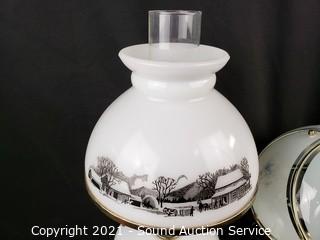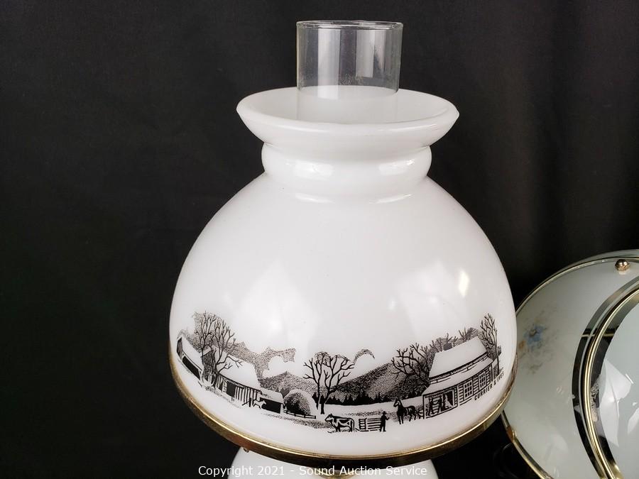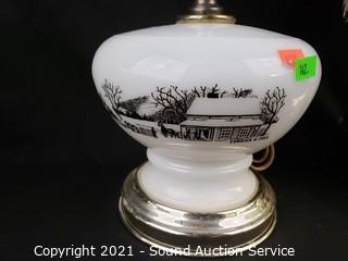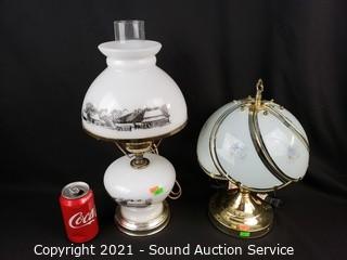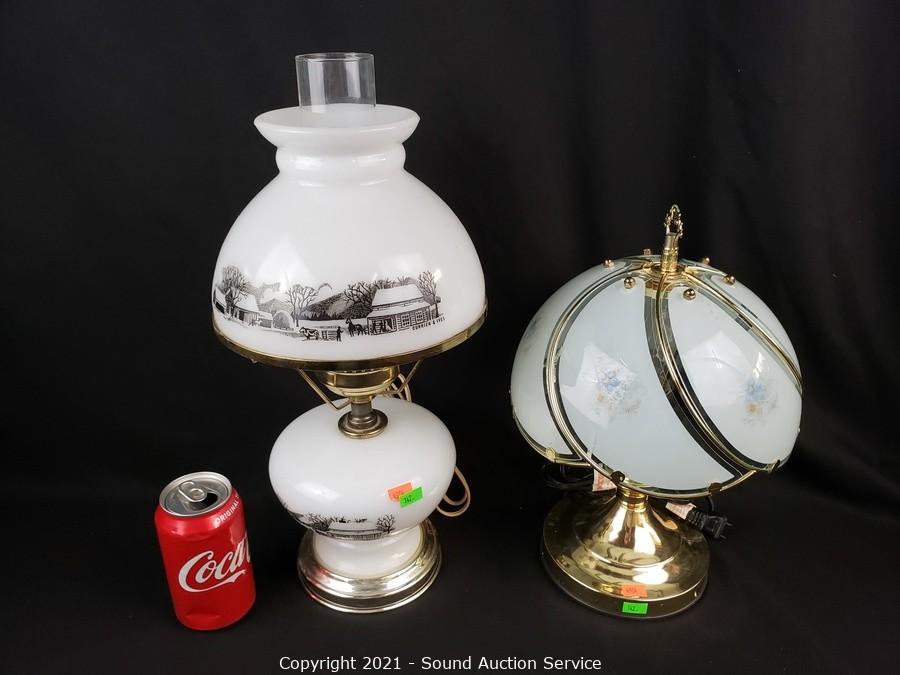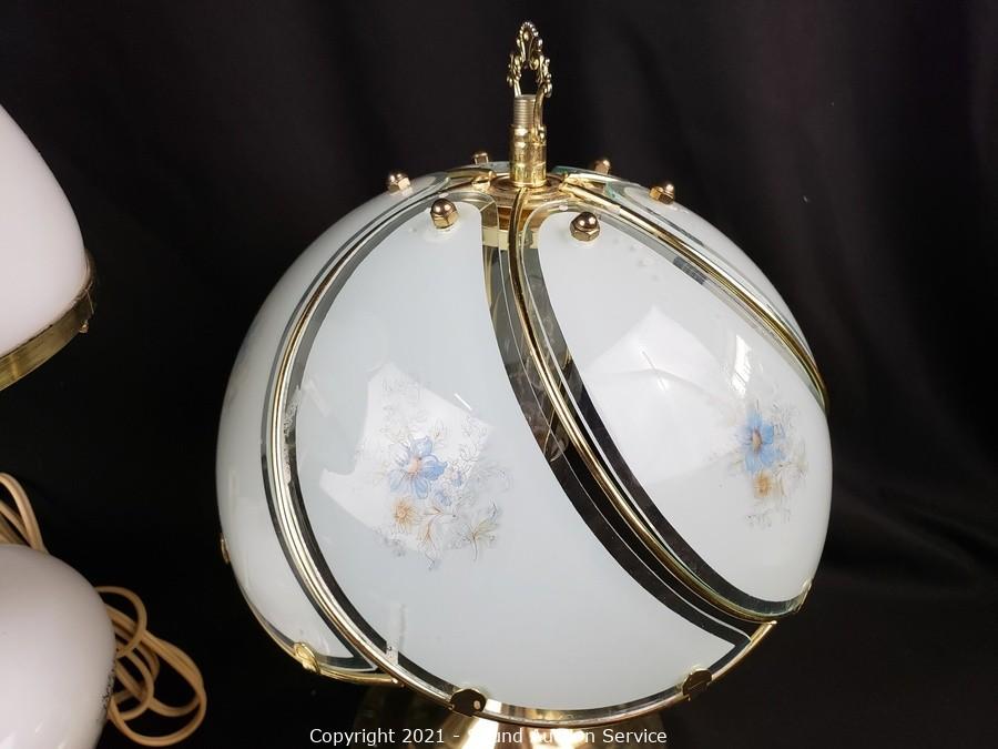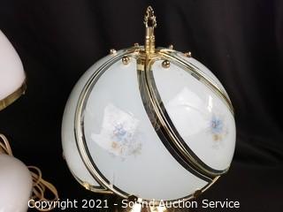 Lot #0142: Pair of Vintage Glass & Brass Table Lamps