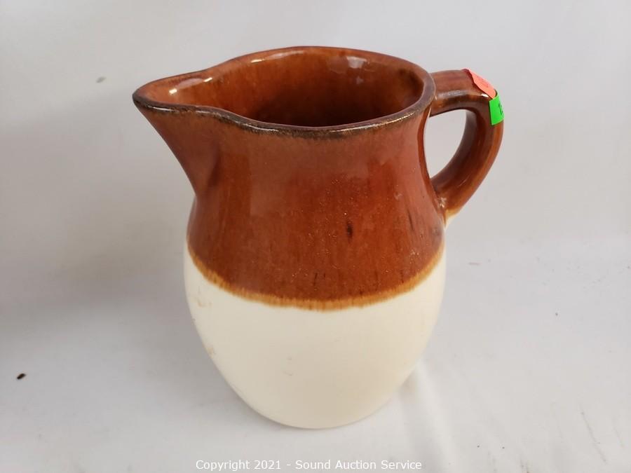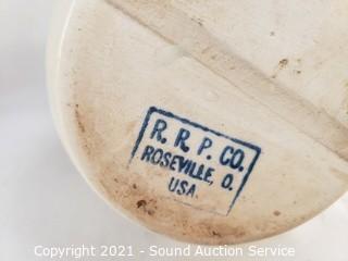 Lot Details: One pitcher is marked R. R. P. Co. Roseville O. USA. Refer to photos for signatures on other pieces. 6" and 9" pitchers, 9" diameter bowl.