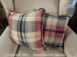 Lot Details: Comes with 2 matching throw pillows. 39" H x 32" W x 17" to seat.
