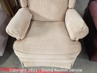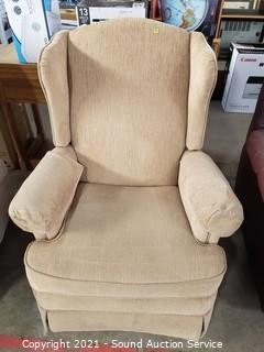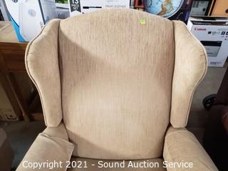 Lot #0025: Tan Fabric Wingback Rocking Recliner