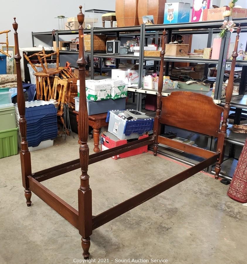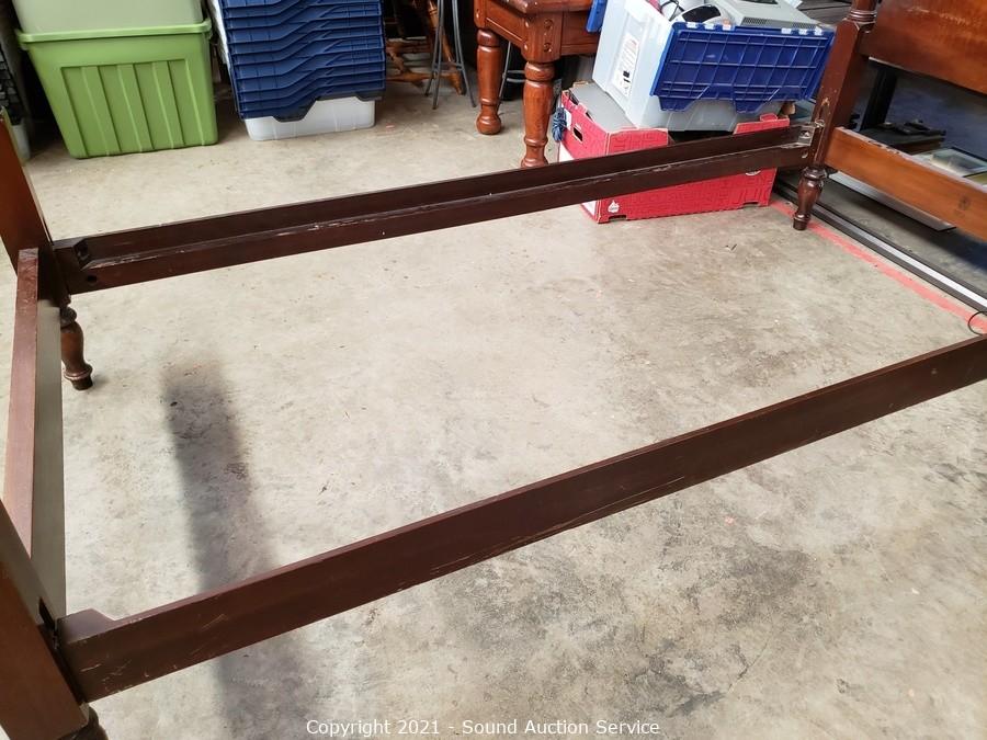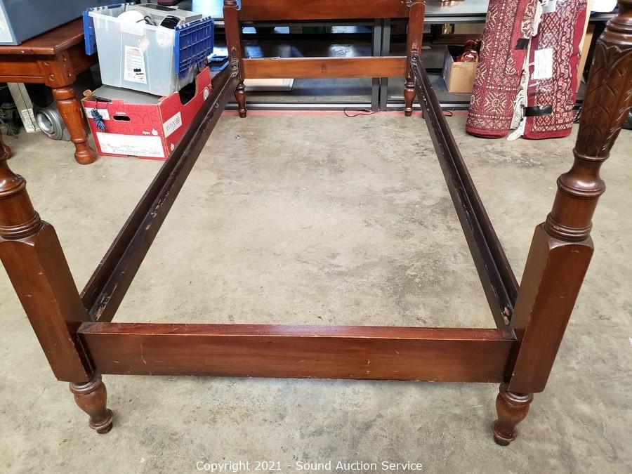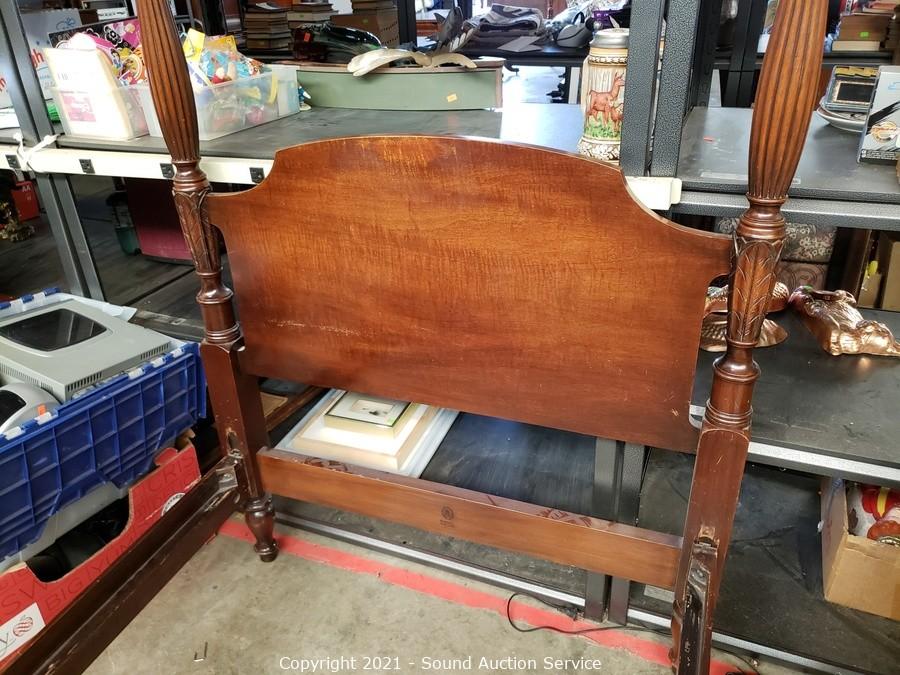 Lot #0097: Vtg. Oxford Mahogany Twin Poster Bed Frame