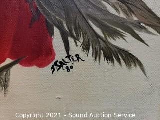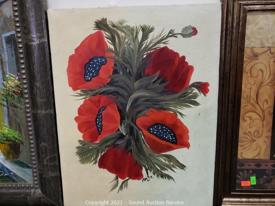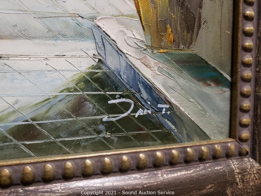 Lot Details: Includes original S. Salter painting on canvas 18" x 14", original Dan T? oil painting of Italy scene 25" x 29" and Sara Kay flower print 19.5" x 23.5".
