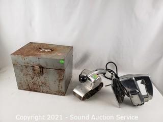 Lot Details: Both work. Sabre saw comes with metal case, sander's cord has some damage.