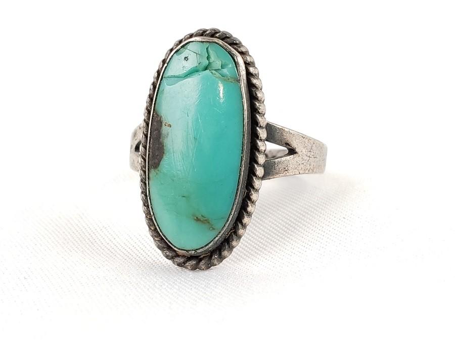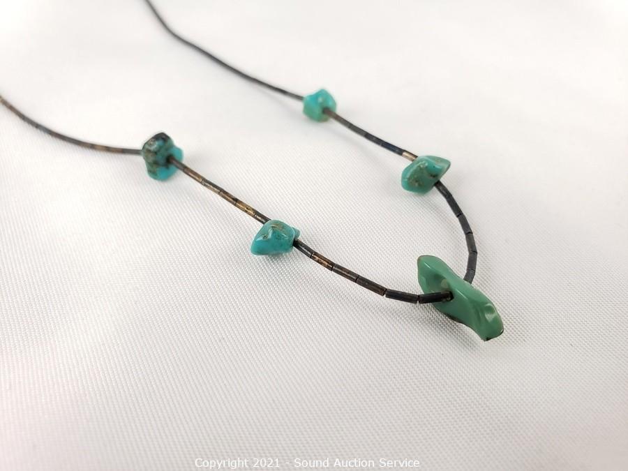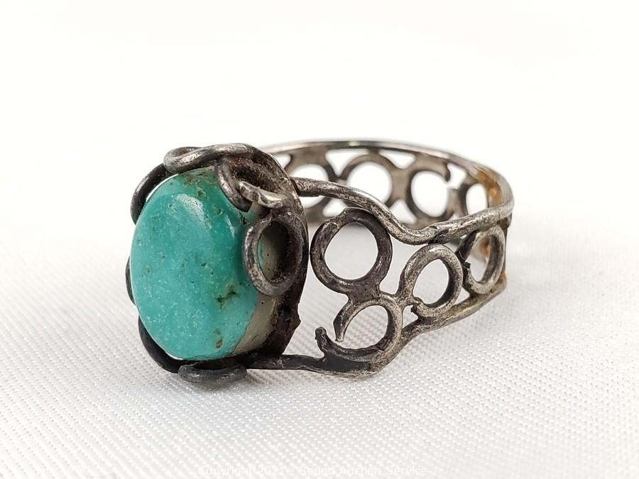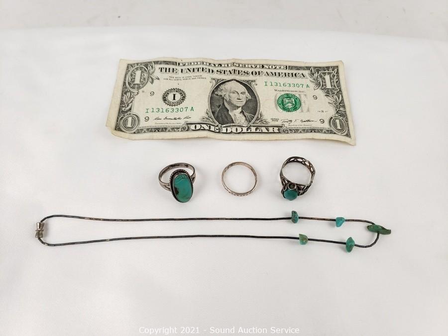 Lot #0197: 3 Silver & Turquoise Set Rings & Necklace