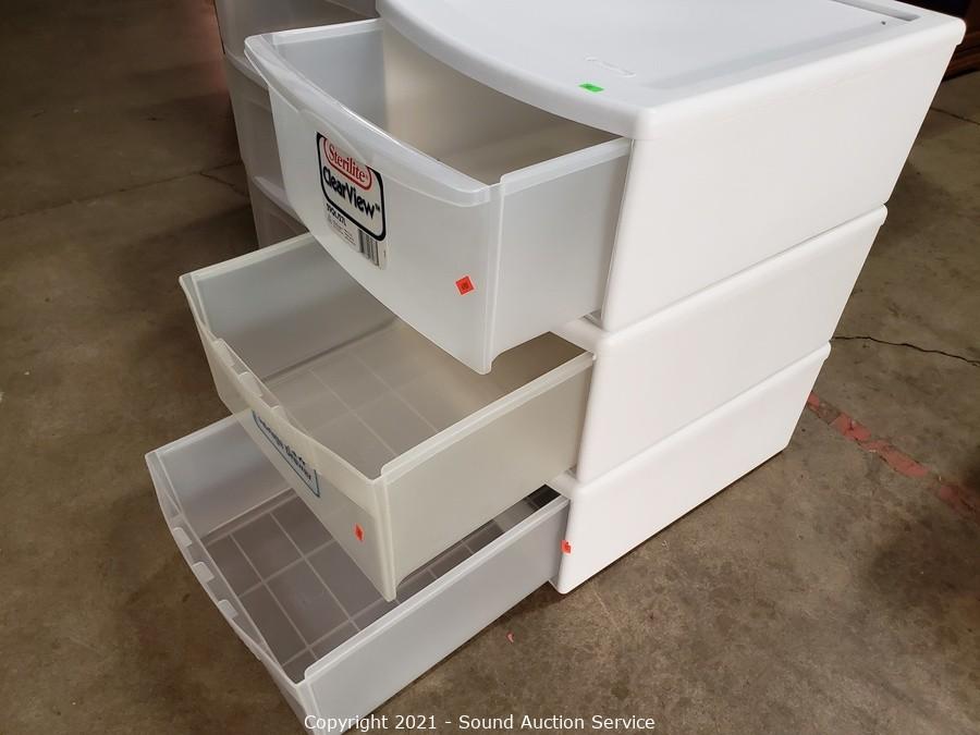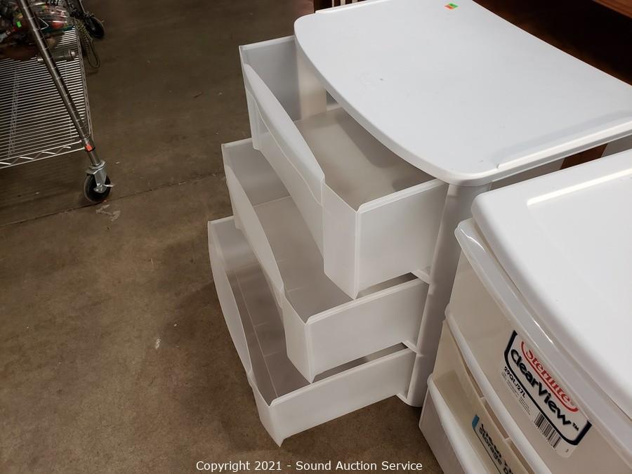 Lot Details: 3 are single drawer stackable, 1 is 3 drawer. (3) 8" H x 15.5" x 20", (1) 25" H x 22" x 15".