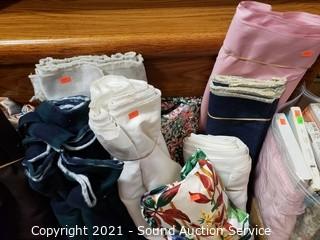 401 Lots including; XBox One S Game Console, Kenmore Washer & Dryer, Some Nice Furniture, Henredon Red Leather Sofa, Beautiful Cherry Finish Corner Shelves, Sony Bravia 40" LCD TV w/Remote, Media Consoles, Nice 5-Tier Metal & Wood Bakers Rack, Nice USA Made Cedar Chest, White Wicker 3-Drawer Open Hutch, Nice Natural Wood Finish Dining Table w/4 Chairs, Temp-Tations & Corning Cookware, Various Collectible Stamps, Various Sound Equipment, Nice Men's Quartz Watches, Vtg. Photos & Ephemera, Assorted Native Decor, Various Exercise Equipment, Assorted Sewing Fabrics Accessories, 14k Gold Rope Chain Necklace, Silver Jewelry, Area & Accent Rugs, Keypad Entry Personal Safe, Various Lighting, Blankets, Sheet Sets, & Much More!!!