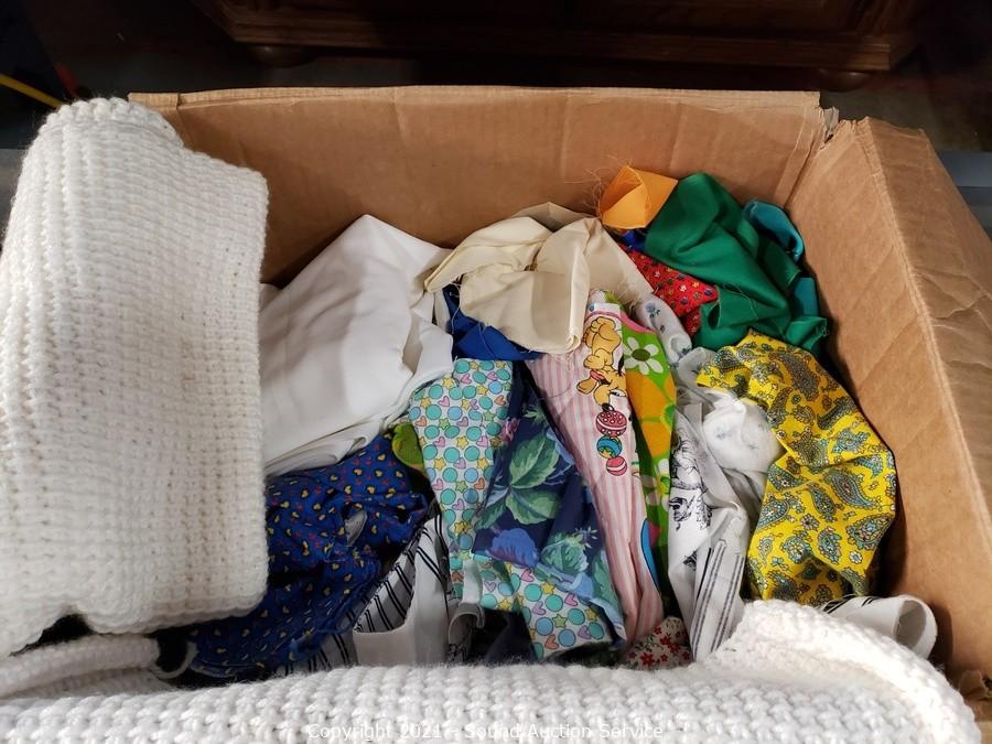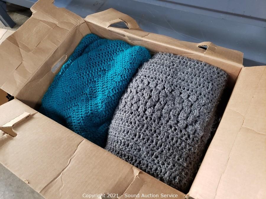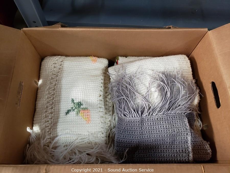 Lot #0363: Various Knitted Afghans, Scarves, Scrap Fabric