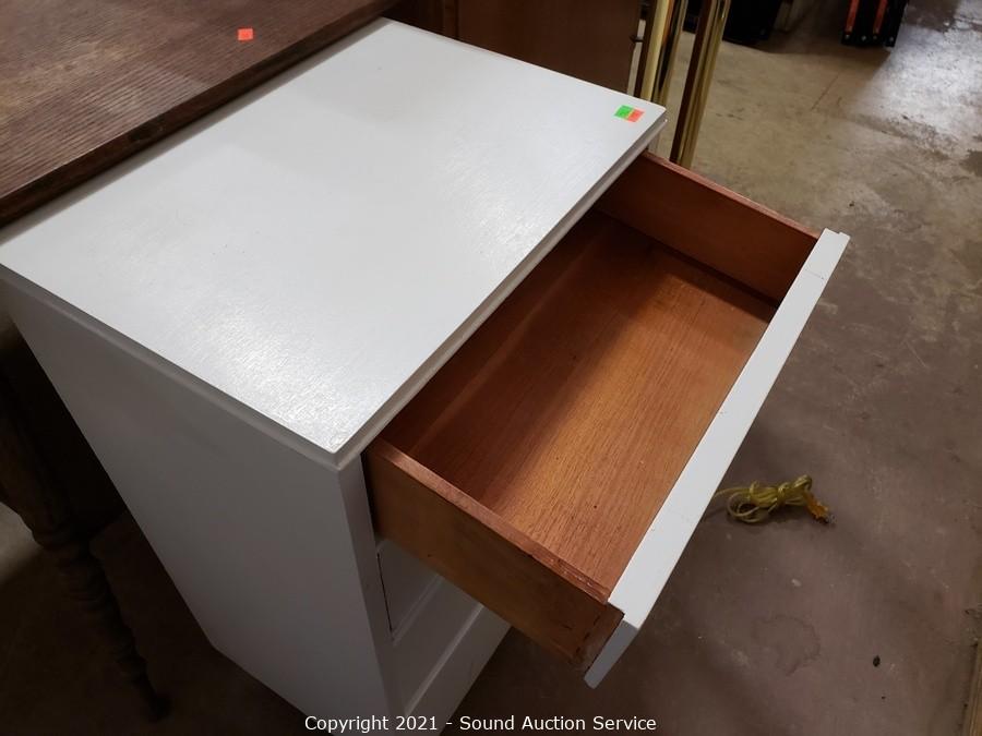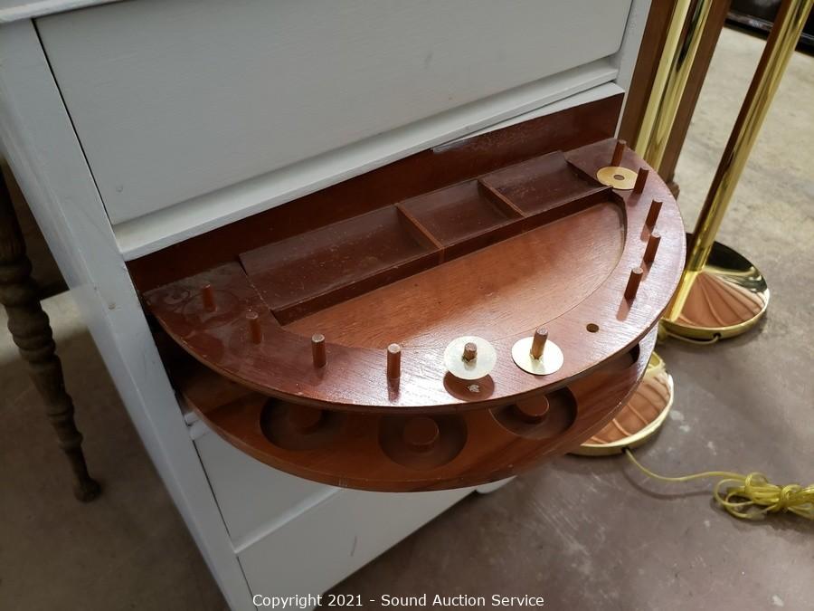 Lot #0176: White Painted 3 Drawer Sewing Cabinet