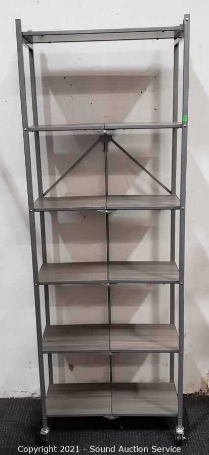 Lot #0256: 6-Tier Collapsible Metal Rolling Shelving Unit