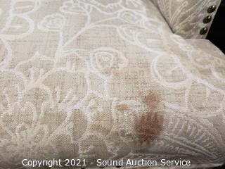 Lot Details: Some stains in the upholstery. 40" x 22", 18" to seat.