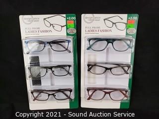 Lot #0294: 6 Design Optics +2.0 Reading Glasses