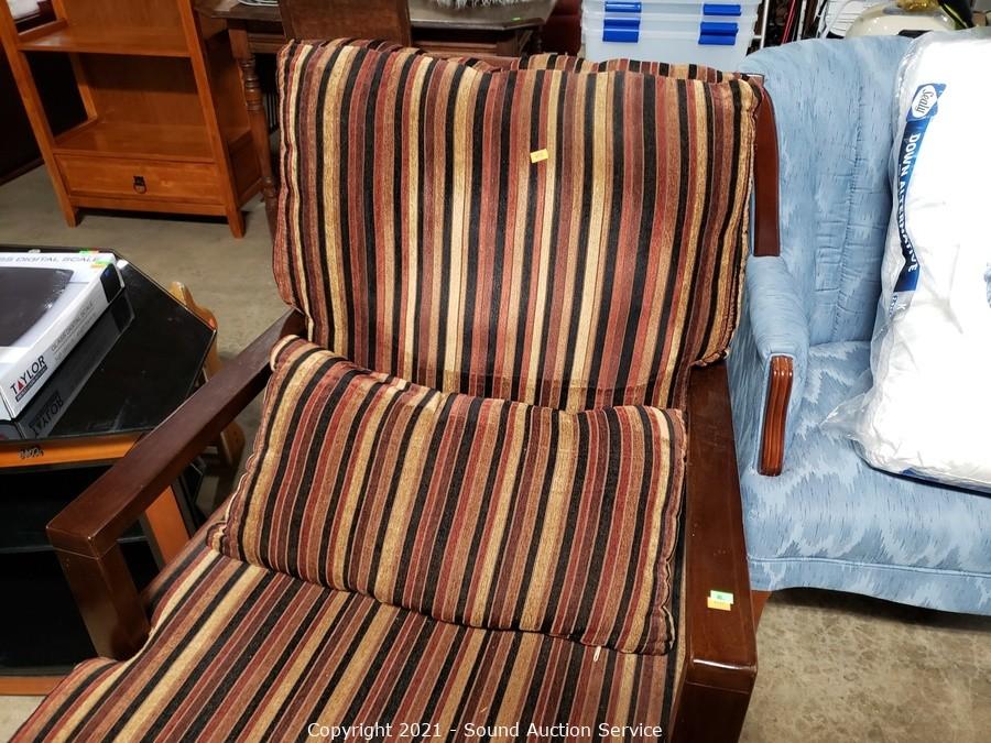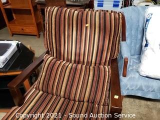 Lot #0080: Nice Wood Framed Stripe Upholstered Accent Chair