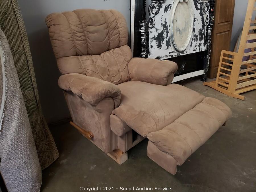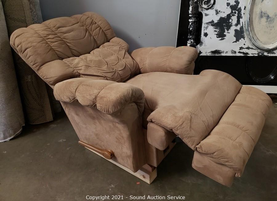 Lot #0370: Raised La-Z-Boy Microfiber Rocking Recliner