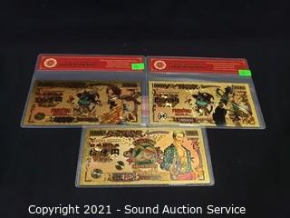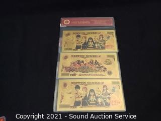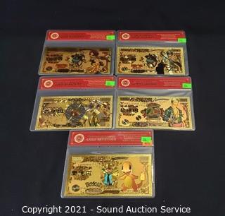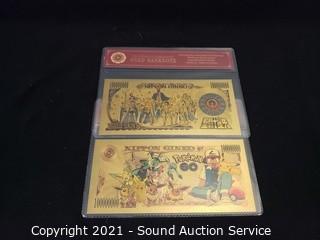 Lot #0236: 5) 99.9% 24k Gold Novelty Anime/Pokemon Banknotes