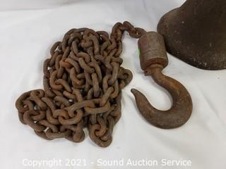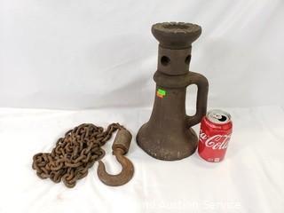 Lot #0207: Chain w/Hook & Vintage Screw Jack