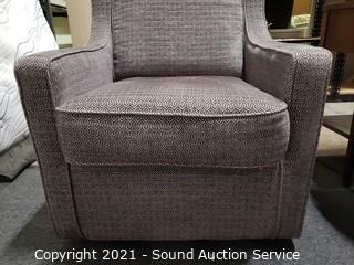 Lot #0003: Light Gray Fabric Swivel Arm Chair