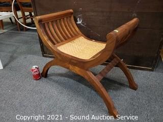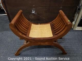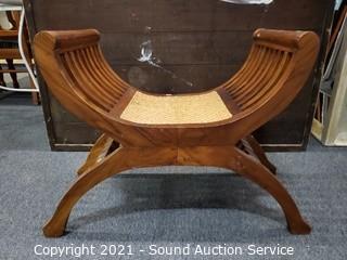 Lot #0025: Vintage Curved Wood Woven Seat Stool