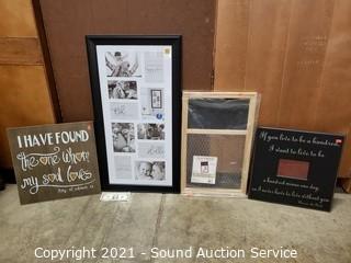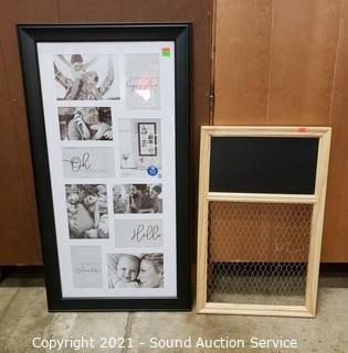 Lot Details: 16" x 16" wall decor, 22" x 14" chalk board, 32.5" x 17" photo collage frame.