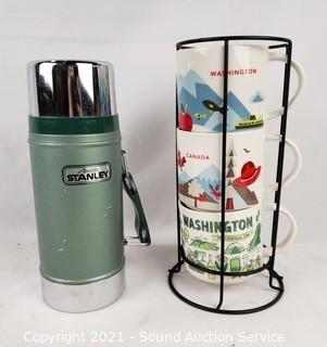 Lot #0202: Fondu Cooker, Travel Thermoses, Mugs & More