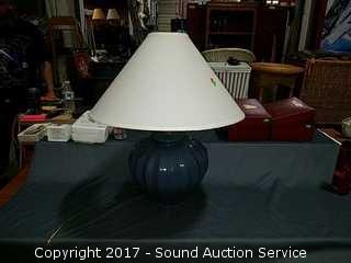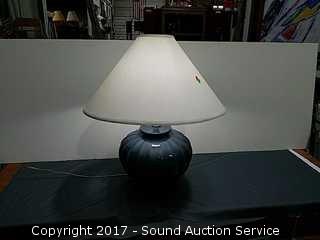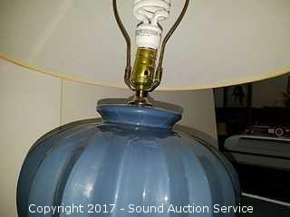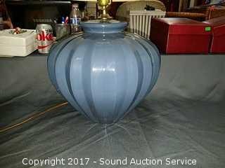 Lot #0068: Blue Ribbed Table Lamp