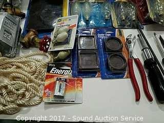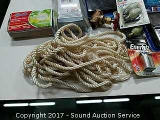 Lot #0202: Coleman Lantern, Bulbs, Walkies, Rope & More