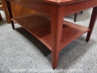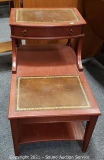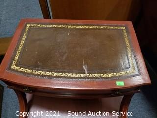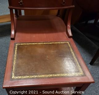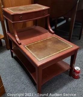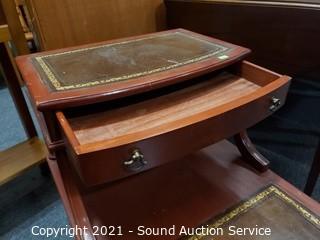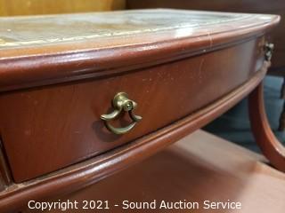 Lot #0026: 3-Tier Cherry Finish Mahogany Leather Top Table