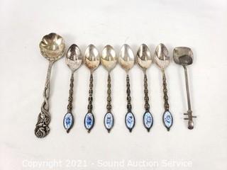 Lot Details: 1 is marked Sterling 950, 1 is marked 900, others marked MK2, tested silver. TW: 105.7g.