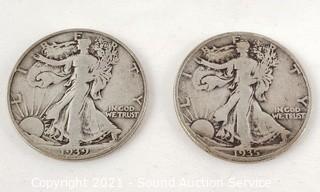 Lot #0128: 1935 & 39 90% Silver Walking Liberty Half Dollars