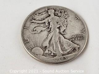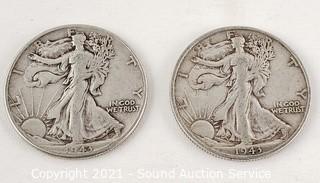 Lot #0129: (2) 1943 90% Silver Walking Liberty Half Dollars