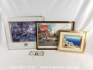 Lot Details: French Monet?, Italy Seaside Vista? & London Piccadilly Circus. 9" x 11" to 14" x 15".