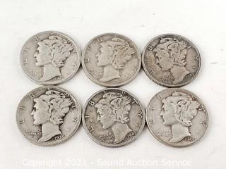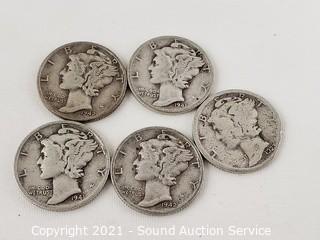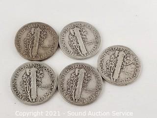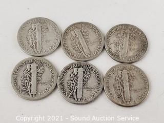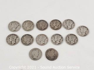 Lot #0132: 90% Silver 11 Mercury & 2 Barber Dimes
