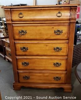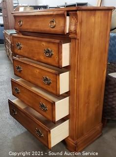 Lot #0032: Beautiful Pine 5-Drawer Dresser