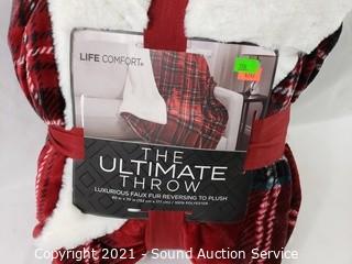 Lot #0388: Life Comfort Red Plush Faux Fur Reversible Throw