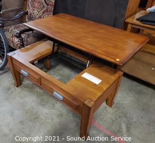 Lot #0005: Nice Lodge Style Oak Lift Top Table