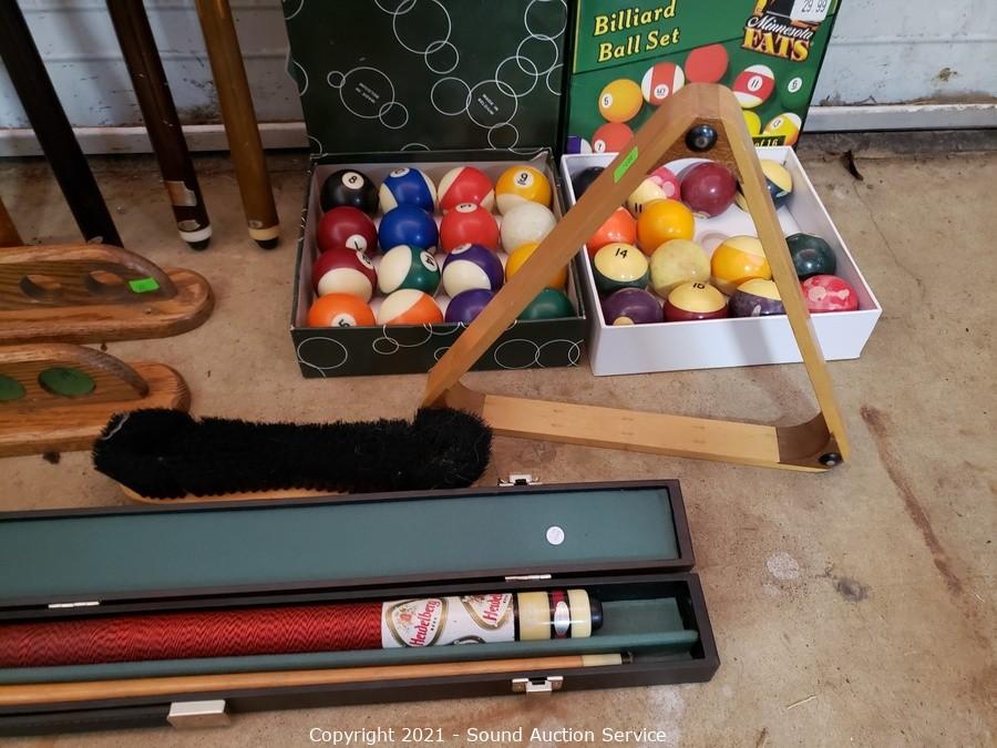 Lot #0301: Pool Sticks, Billiards Ball Sets, Racks Brush