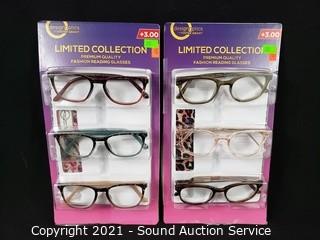 Lot #0237: 6 Design Optics Limited Collection +3.0 Glasses