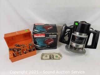 Lot #0212: B&D Plunge Router w/Bits & Makita Sander