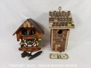 Lot #0197: German Cuckoo Clock & Penny Layered Birdhouse