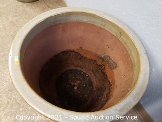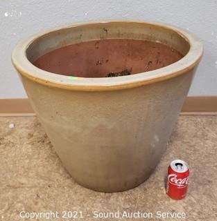 Lot #0267: Large Glazed Pottery Planter & Plastic Pot