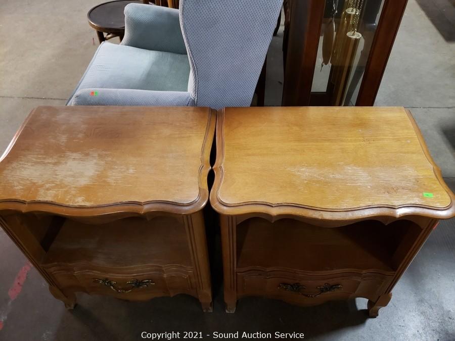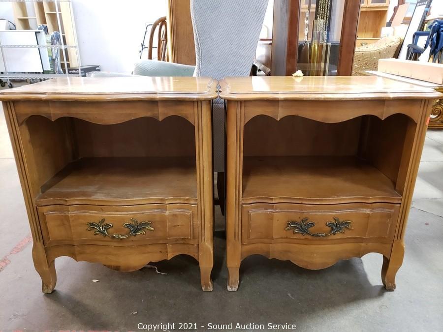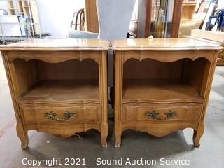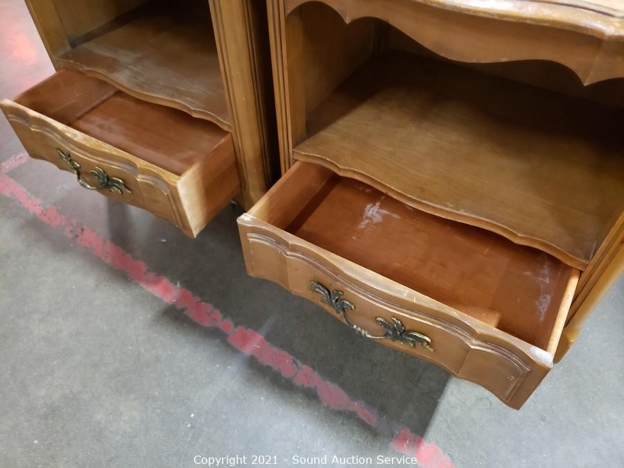 Lot #0168: 2 Vtg. Maple Serpentine Single Drawer Nightstands