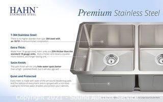Lot #0034: Hahn ZR001 Handmade Stainless 32" Double Bowl Sink