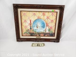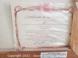 Lot Details: Nice ornate frame, #29/900, titled "Christmas Treasures". In excellent condition with CoA. 17" x 21".