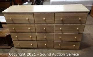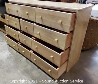 Lot #0016: Vintage Blonde Wood 12-Drawer Chest