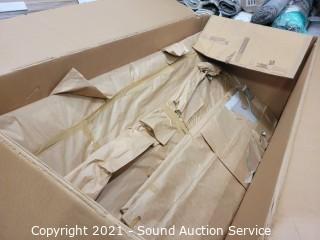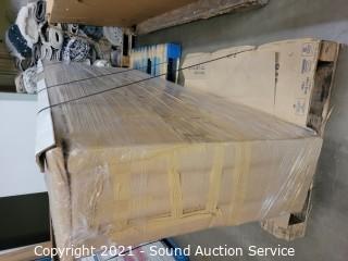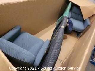 Lot Details: Unknown contents, appears to be office supplies, Panels, unsure, see 2 office chairs. As is. Refer to photos or come in to preview for more info. boxes are approx. 40" x 8ft, crate is 43" x 15" x 9ft.