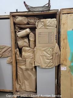 Each vault is approx. 7ft H x 4ft W x 7ft D. All appear to contain office, cubical, furniture & accessories. Please come in to preview, contents of vaults may not be gone through. Vaults themselves & blankets not included. As is, no refunds. $100, deposit required at the close of the auction upon winning a vault, refunded after removal.