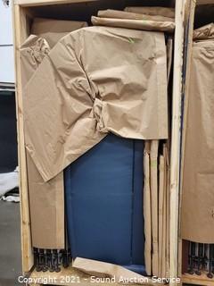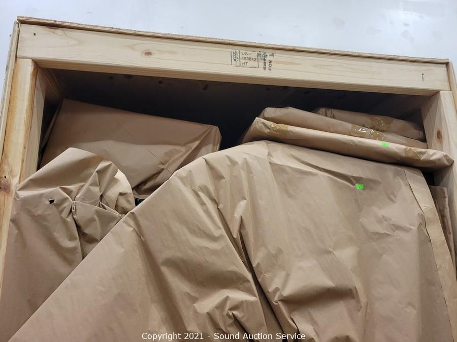 Each vault is approx. 7ft H x 4ft W x 7ft D. All appear to contain office, cubical, furniture & accessories. Please come in to preview, contents of vaults may not be gone through. Vaults themselves & blankets not included. As is, no refunds. $100, deposit required at the close of the auction upon winning a vault, refunded after removal.