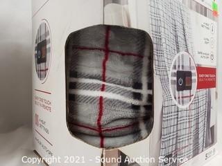 Lot #0186: 2 Brookstone Lt. Gray & Plaid Heated Plush Throws