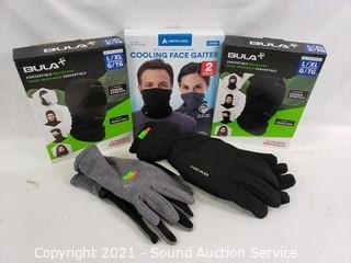 Lot #0203: 2 Pairs Gloves, 2 Balaclavas, 2 Face Gaiters