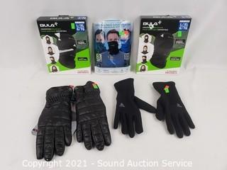 Lot #0191: 2 Women's Gloves, 2 Balaclavas, 3 face Gaiters