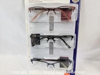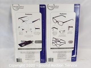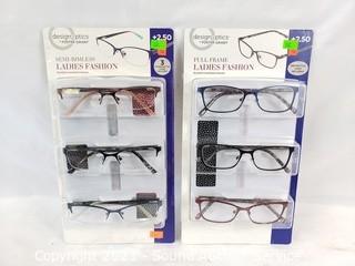 Lot #0302: 6 Design Optics +2.5 Reading Glasses w/4 Cases